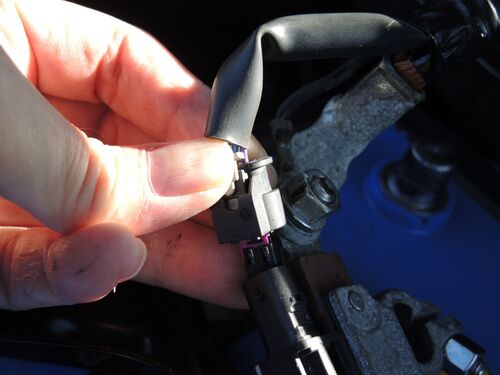 CX-3のバッテリー交換作業について順を追って書いていきます。 まずバッテリーを積み替えちゃいます。 バッテリーを押さえているステーは、両端のナットを完全に外す必要は無くて、この位まで緩めれば外すことが出来ます。 この前に付けたアーシングケーブル…